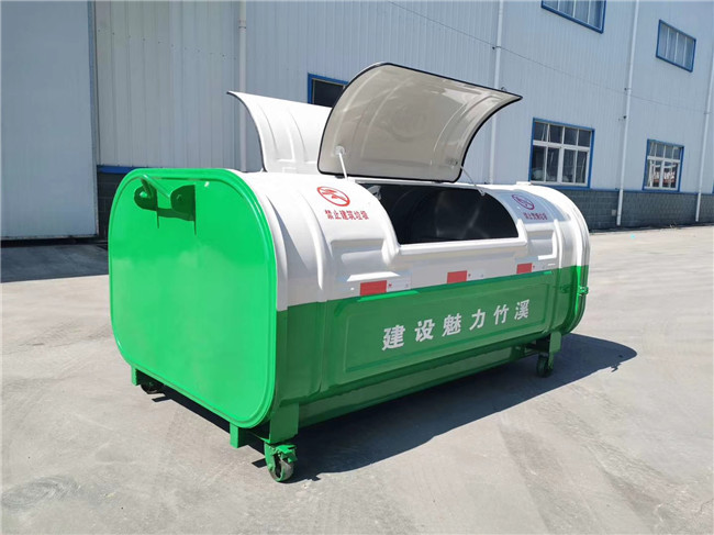 垃圾箱體外形尺寸2000x1500x1000(長*寬*高)。外觀:垃圾箱造型美觀大方,整體與環境協調,顏色選配天藍色、軍綠色、紅色。;垃圾箱蓋采用手柄開啟及腳踏板開啟機構,有效防雨。通過踩下或松開踏板,實現上蓋的開啟和關閉,同時上蓋設有打開抓手,人性化設計,便于垃圾的存放及密封。