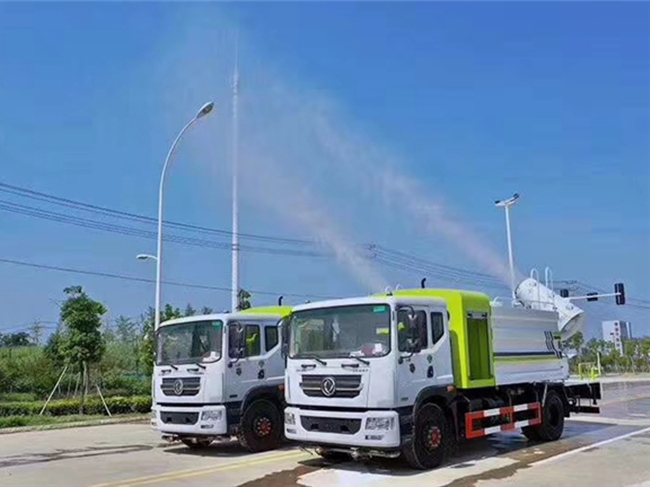 東風多利卡D9壓塵車罐體容積10方,噴霧機最大射程可達80米,可選裝40-80米噴霧機,噴霧流量1m3/h(節水可調),水平旋轉360度可調,俯仰角度可調為-10°-45°,覆蓋面廣,水平旋轉180度,控制范圍大;霧粒為30-200微米,流量可根據客戶要求調節;可實現遠程遙控。灑水寬度可達14米,高壓水槍垂直射程近30米,雙向側噴寬度20余米。