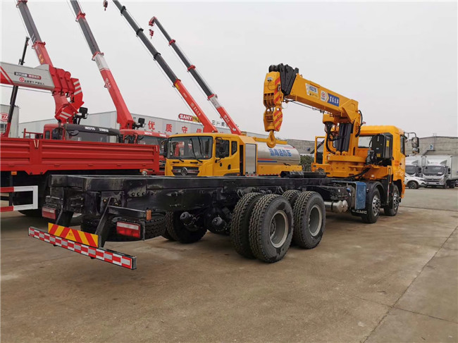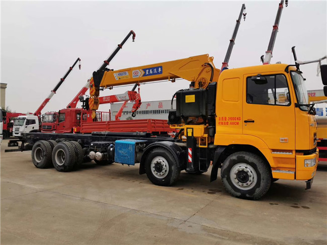 4. 華菱重卡前四后八隨車吊專用底盤3臺,漢馬發動機345馬力,法士特12檔變速箱,前橋7.5噸,后橋13噸,11.00R20鋼絲胎。