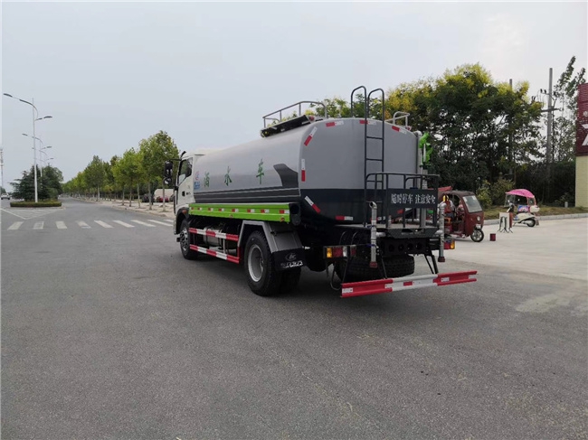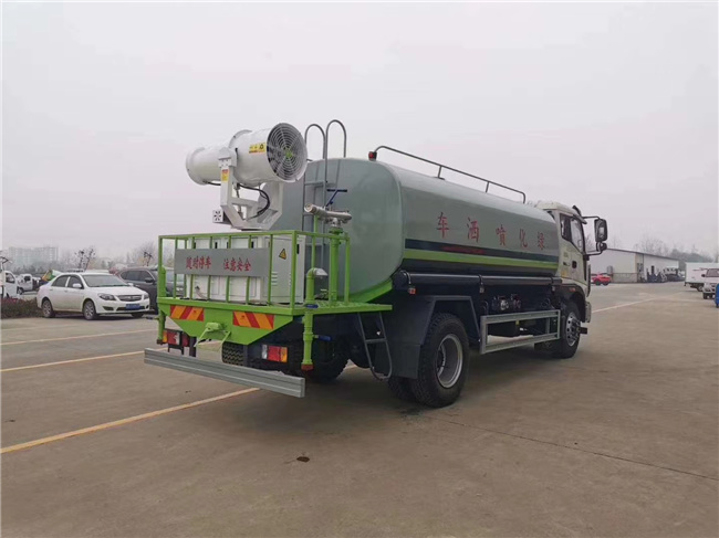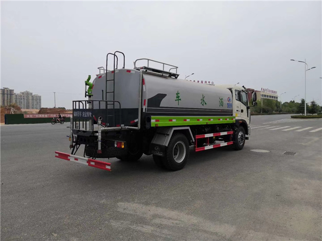 上裝配置:罐體采用4mmQ235優(yōu)質(zhì)碳鋼板制作,容積15立方,前沖(噴)后灑,帶側(cè)噴,罐體后帶工作平臺,平臺上安裝綠化灑水炮,灑水炮可旋轉(zhuǎn),可連續(xù)調(diào)成直沖狀、大雨、小雨、毛毛雨,帶安全護欄,配備億豐大功率專用自自排灑水泵,安裝過濾網(wǎng),帶消防接口,可通過消防栓進水,帶自流閥,罐體金屬漆。