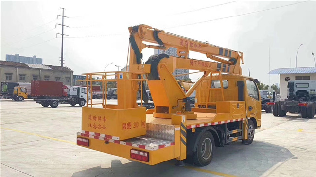 東風多利卡14米高空作業車底盤配置:東風雙排黃色駕駛室,軸距3300mm,東風輕型102馬力,全柴115馬力,玉柴115馬力正宗國五發動機,油剎,2噸前橋,3.5噸后橋,帶方向助力,7.50R16尼龍胎。加裝空調。