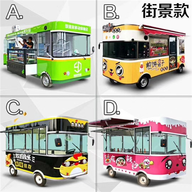 新能源電動售貨車款式有:中巴款、巴士款、三輪款、街景款、木屋款、特殊車型等。以餐車定制為主,主要包含電動四輪中巴餐車、木屋款巴士小吃車、街景美食車、電動三輪早餐車、流動早餐車、美食小吃車,餐車用于各類早餐、中外各地特色小吃的現場制作與銷售,早餐車可用于主食保溫、熱粥等功能,美食小吃車可用于燒烤、油炸、鐵板燒、麻辣燙、酸辣粉、串串香、雞蛋灌餅等中外各地特色小吃的現場制作與銷售。早餐車一直以來被人們稱做“流動的店面”“流動的廚房”“流動的財富”。