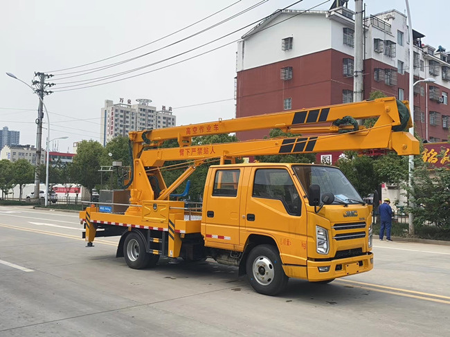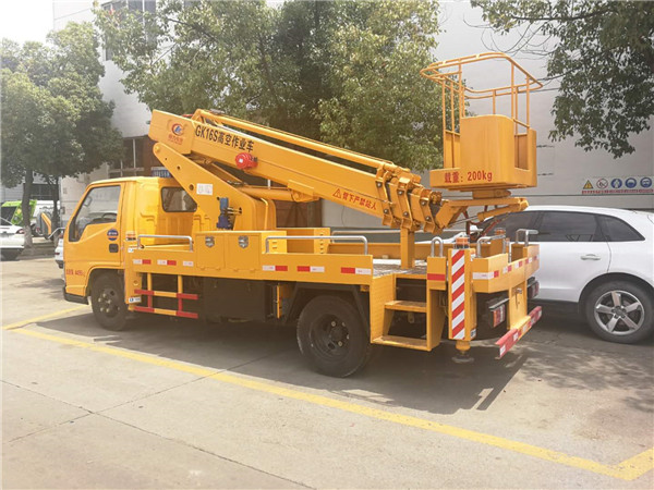 工作高度及半徑因不同車型而定,回轉角度360。,支腿設置橫向(增加支撐跨度)和縱向H型支撐,工作欄上限載200Kg,限兩人作業。