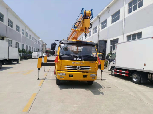 ★18米高空作業(yè)車隨車安裝四個(gè)液壓支腿,以保證整車在操作時(shí)的穩(wěn)定性與安全性。高空作業(yè)車選裝吊鉤,吊鉤吊1-1.5噸。高空作業(yè)車均可上下操作,360度全方位旋轉(zhuǎn),安裝手油門。