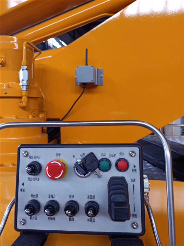 上裝配置:液壓360度全回轉(zhuǎn),三節(jié)折疊臂,單液壓舉升缸,帶雙向平衡閥,電控操作舉升臂,1噸可伸縮式吊鉤,四支液壓油缸可調(diào)式支腿帶雙向液壓鎖(支腿操作為手動操作,可單獨(dú)控制)。左右警示燈,黃色車身,全車貼反光標(biāo)識,雙人穩(wěn)定作業(yè)斗,帶后防護(hù),倆側(cè)防護(hù),配一個(gè)移動工具箱。