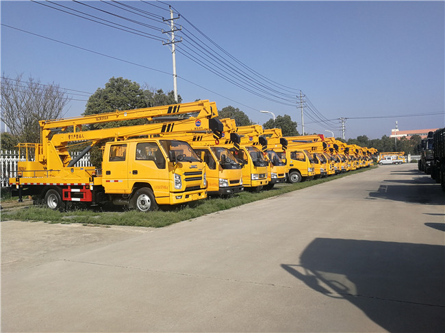 高空作業車大體有折疊臂、伸縮臂、混合臂、自行式等四個系列。(車載式和自行走式)