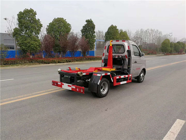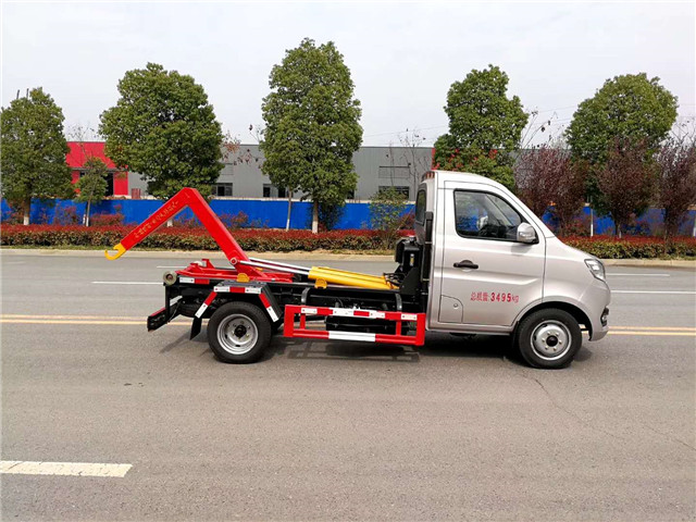 長安3方勾臂垃圾車廣泛適用與城市街道學校垃圾處理,可一車配備多個斗,各個垃圾點放置多個垃圾斗,帶自卸功能,液壓操作,方便傾倒。