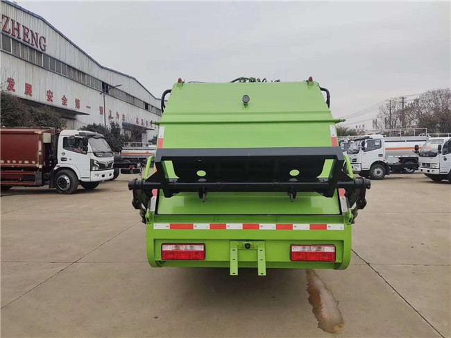 東風福瑞卡國六后裝壓縮式垃圾車,搭配云內150馬力國六發動機,萬里楊六檔箱,245真空輪胎,軸距3800mm,原廠空調,電動玻璃,中控鎖,正規東風股份GB7258-2017新規底盤;上裝采用Q345高強度錳鋼板制作,廂體容積:8立方米,可裝20立方散裝垃圾,合肥快速液壓泵,大流量快速手自一體多路換向閥,可編程PLC電控系統,卸料時帶一鍵循環系統,司機不下車可完工卸料工作。尾部翻轉三角斗機構,(可選裝翻轉桶裝置,可翻120/240L國標方形塑料桶裝置)。選裝氣動密封蓋,選裝遙控器操作。