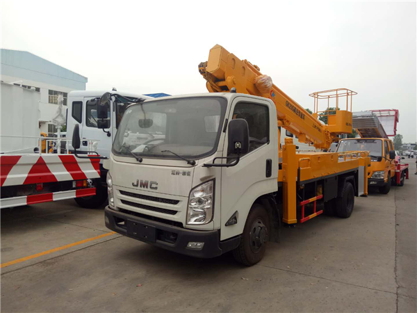 江鈴凱銳型22米高空作業車采用伸縮式直臂結構,作業臂為4節伸縮式,轉臺可操作,也可遙控器操作,可360度回轉,四液壓支腿,工作斗最大承重200公斤,不銹鋼圍板、花紋防滑走臺板。