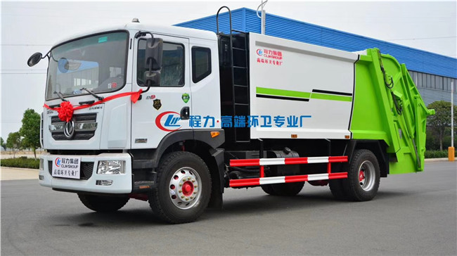 程力新廠東風D9壓縮垃圾車國六公告CL5181ZYSGH6,3950、4500軸距可選康明斯210馬力發動機,295真空胎尾部大落地斗、翻轉架、三角斗可選,環保齊全