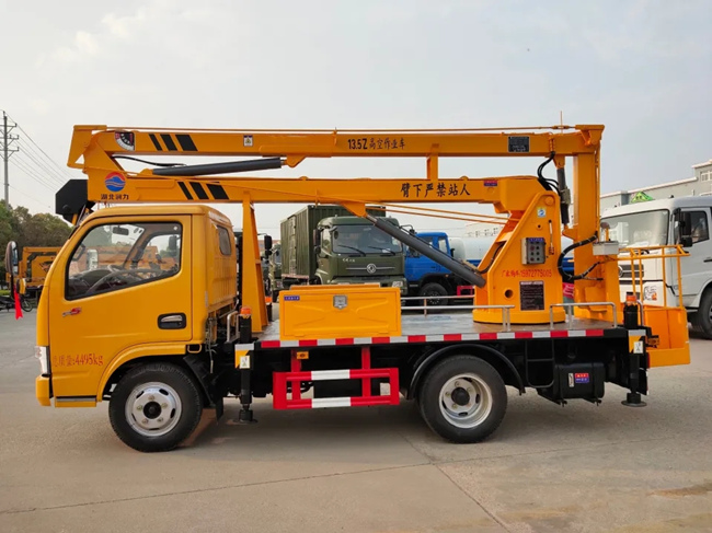 上車(chē)采用曲臂式結(jié)構(gòu)設(shè)計(jì),作業(yè)高度可達(dá)13.5米。各工作臂均裝有定向平衡閥,用以提升臂架升、降、停止過(guò)程中的平穩(wěn)性。轉(zhuǎn)臺(tái)、工作斗雙工位操作,安全又方便。工作臂可360°全方位旋轉(zhuǎn),有效擴(kuò)大作業(yè)范圍,提高工作效率。
