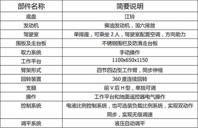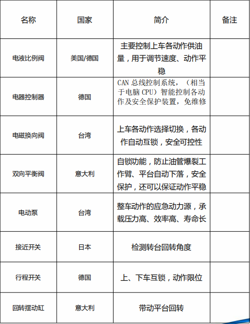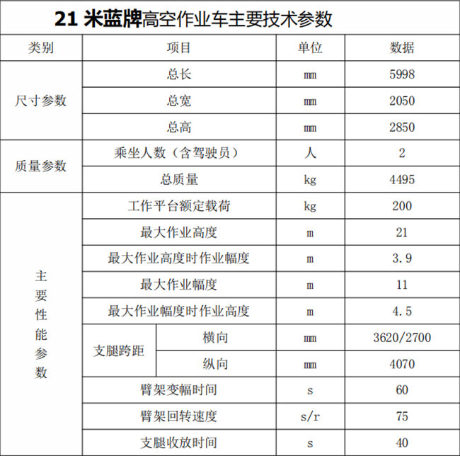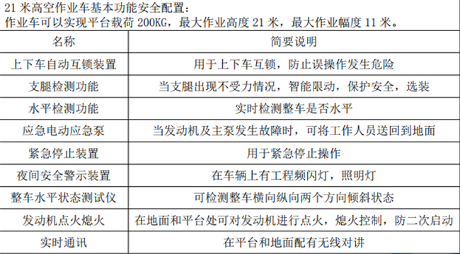 精品21米藍牌高空作業車配件明細: