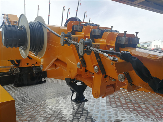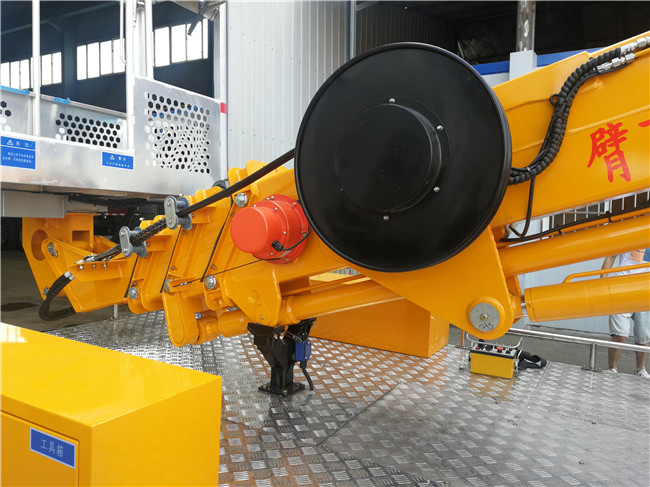 四邊形四節工作臂,同步伸縮,結構緊湊,作業效率高,作業范圍大。 伸縮油缸外置,鏈條伸縮機構,更容易觀察故障點,方便維修。